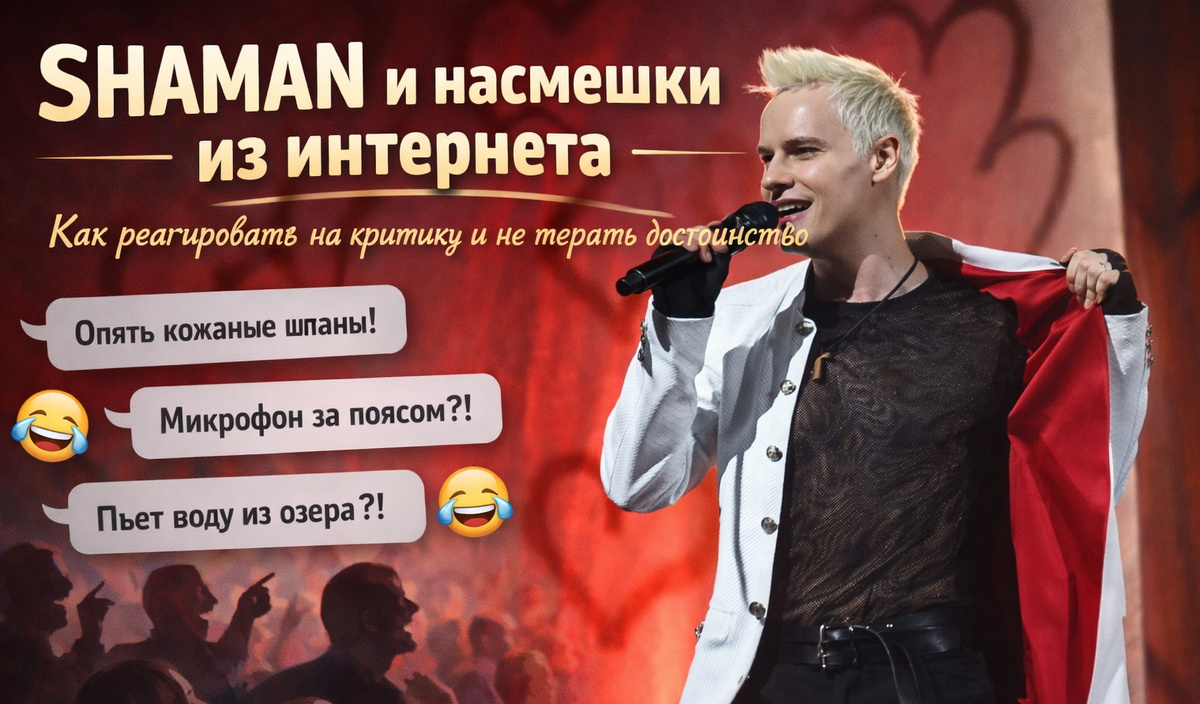 История про певца SHAMAN. На концерте он решил ответить на самые популярные насмешки из интернета. Причем сделал это прямо со сцены. Не оправдывался, не злился, а словно устроил разговор с собственными критиками.