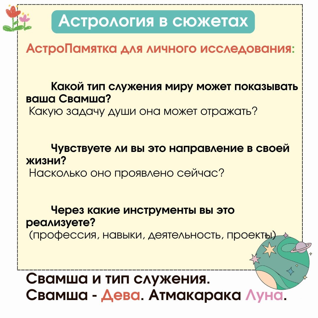 ? Продолжение расследования…Начало тут --- Знаете (писала 👆), вся моя практика попыток определить профессию через анализ 10 дома привела к большим сомнениям. Результаты чаще всего не удовлетворяли. 🤔 И недавно я решила проверить другую гипотезу. Эрнст Вильгельм говорит: ключ к профессии лежит не в 10 доме, а в техниках Джаймини (и лагне, конечно же). И очень важна Свамша — знаке Атмакараки в Навамше. С нее и решила начать. Кейс №2 - карта Дипака Чопры (врач). Карта тут И уже первый показатель оказался очень красивым. Напомню: - Атмакарака — Луна - Свамша — Дева Получается любопытная картина: призвание человека направлено на поиск дефектов и их исправление. И ведь именно этим он и занимается — только не совсем в классической медицине. Он не столько «борется с болезнями», сколько ищет глубинные причины дисбаланса между телом и сознанием. Почему? Смотрим на инструмент — Атмакарака в Раши. Но есть одна странность, которая меня до сих пор слегка смущает… Влияния 6 дома — клас