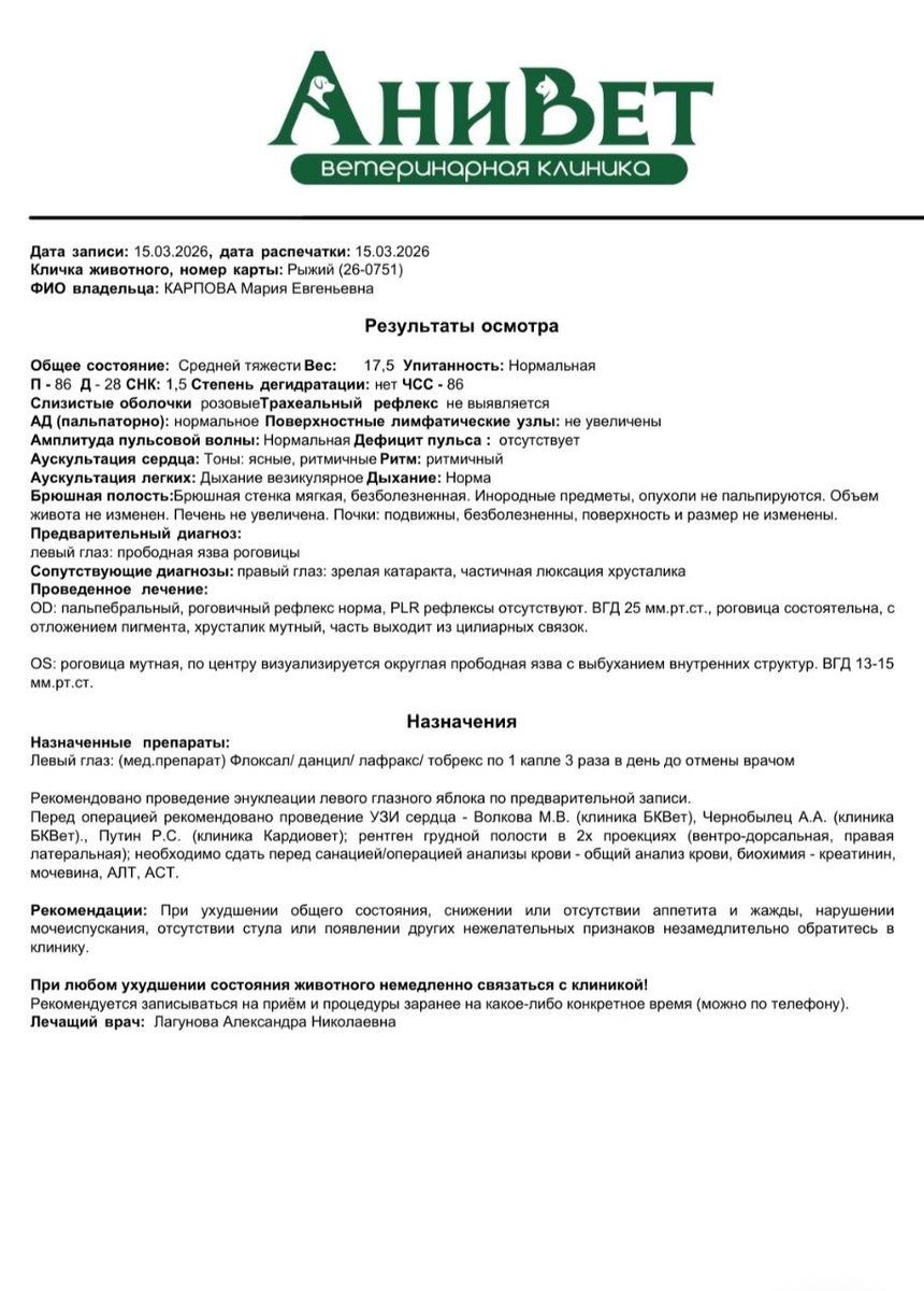 По Рыжему. Глаз под удаление.