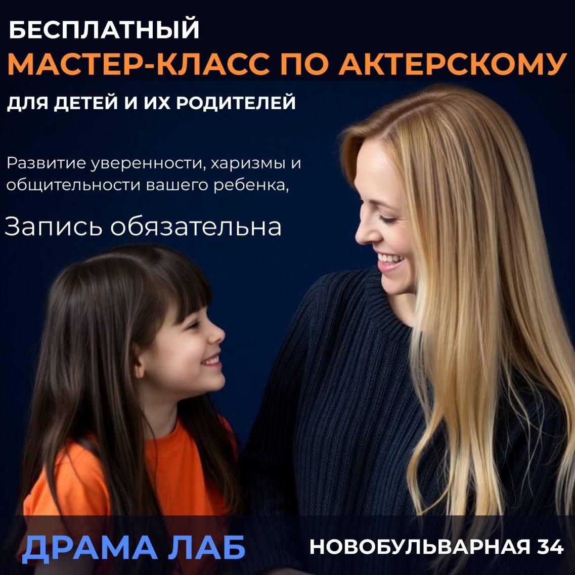Бесплатный мастер-класс по актерскому мастерству для детей и их родителей