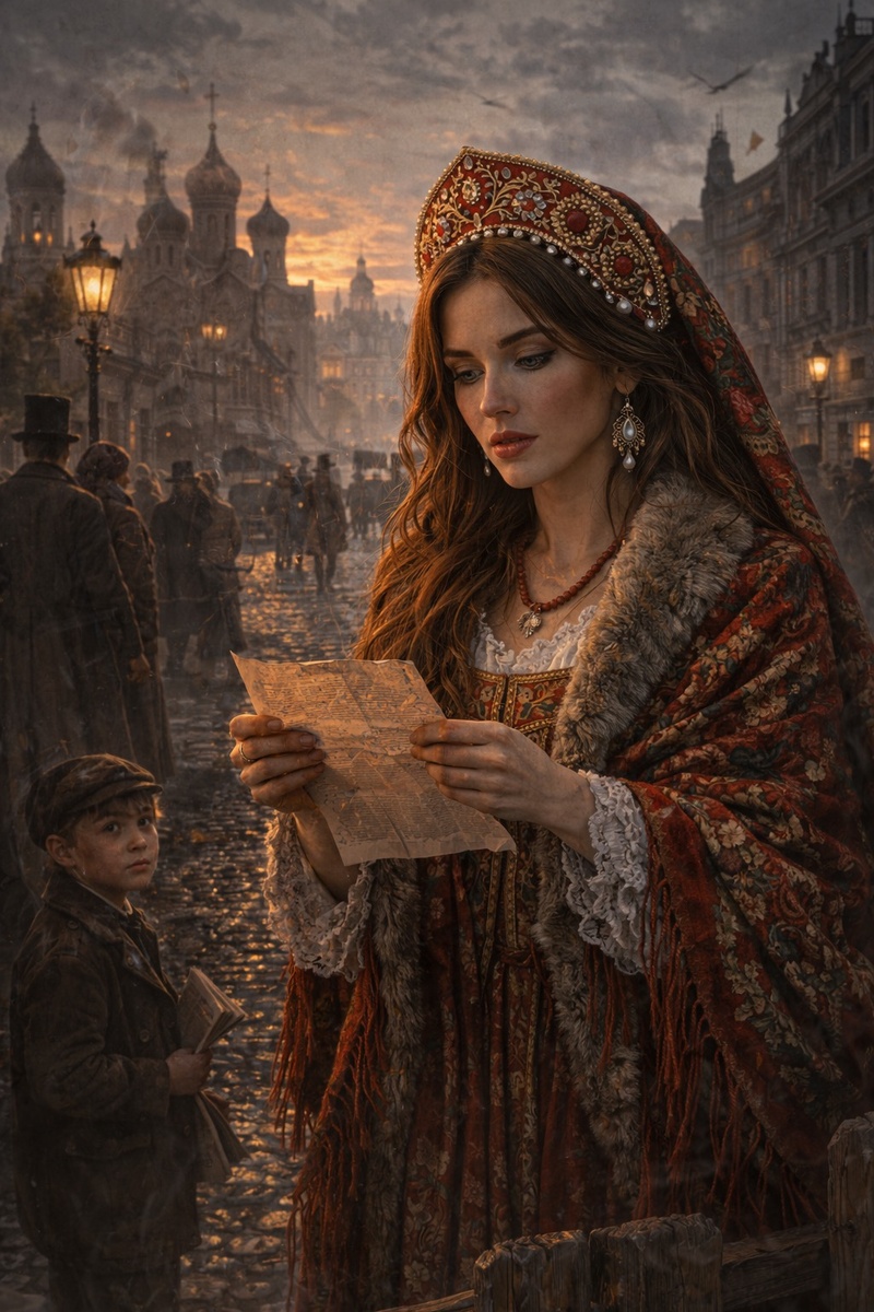 Арина ожидала увидеть что-то большое, шумное, страшное. Но город оказался не таким уж большим — так, уездный, каких много на Руси. Двухэтажные дома, мощёные улицы, редкие фонари, церковные купола в темноте. Людей на улицах почти не было — только изредка проходили запоздалые прохожие, кутаясь в воротники.