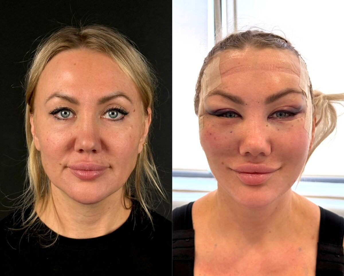 Прошли первые сутки после операции. Нашей пациентке выполнили эндоскопическую подтяжку средней трети лица — бережную методику, которая возвращает ткани в их естественное положение через небольшие разрезы. Сейчас лицо находится в состоянии гиперкоррекции: ткани приподняты чуть выше, чем нужно в итоге, есть отёки и непривычные ощущения. Это абсолютно нормальный этап 🔥 Гиперкоррекция — временное состояние. Так задумано природой: ткани фиксируются с небольшим запасом, чтобы, когда отёки спадут и всё «уляжется», результат оказался именно там, где нужно. Никакой натянутости не останется, только естественная свежесть и молодой контур. Сейчас главное — покой, холод и наша забота 🤍 Мы будем держать вас в курсе восстановления и обязательно покажем, как меняется лицо день за днём. А пока пациентка отдыхает под присмотром команды. Впереди — красивые изменения, а мы рядом на каждом этапе ✨