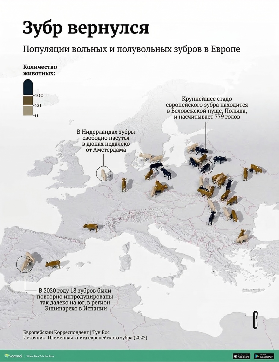 🦬 Возвращение короля лесов: где в Европе снова живут зубры