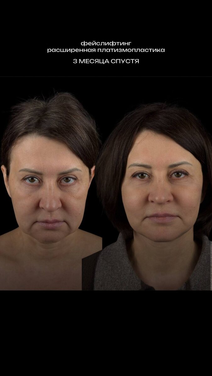 Три месяца хороший срок, чтобы оценить промежуточный результат после серьёзного омоложения. Нашей пациентке выполнили фейслифтинг и расширенную платизмопластику — работу с глубокими структурами лица и шеи. Отёки к этому времени практически ушли, ткани успокоились, и видно главное: чёткий овал, подтянутая шея и естественный, без натянутости, контур 🔥 Расширенная платизмопластика позволяет особенно тщательно проработать зону шеи: убрать провисание, сгладить кольца, сформировать красивый угол. Вместе с фейслифтингом это даёт тот самый эффект «дорогого» омоложения, когда лицо выглядит свежим и отдохнувшим, но никто не догадывается об операции 🤍 Пациентка уже вернулась к привычной жизни и ловит комплименты. Говорит: "Я будто на 10 лет моложе, но при этом осталась собой!". А для нас это лучшая оценка. Три месяца только начало, дальше результат будет становиться ещё мягче и естественнее. Следим за процессом и радуемся вместе ✨
