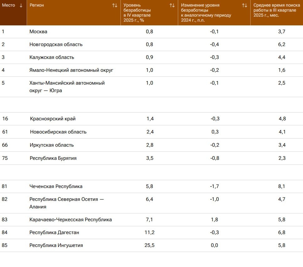 По итогам четвертого квартала 2025 года уровень безработицы, по данным Росстата, составил 2,2%, снизившись на 0,1 процентного пункта по сравнению с аналогичным периодом прошлого года. Число безработных сократилось на 133 тысяч человек. Ранее Иркутскстат заявил об уровне зарегистрированной безработицы в Иркутской области в 0,4%. Общая численность рабочей силы в регионе – 1,2 млн человек. 😀😃 Подписывайтесь на наш канал