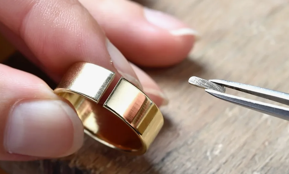Многие считают, что любое кольцо можно легко увеличить или уменьшить. В большинстве случаев это действительно возможно, но существуют конструкции украшений, где изменение размера либо очень сложное, либо вообще невозможно без серьёзного вмешательства в дизайн. В мастерской такие ситуации встречаются регулярно: человек приносит кольцо с просьбой изменить размер, а после осмотра становится понятно, что конструкция украшения просто не позволяет сделать это безопасно. Разберёмся, почему так происходит. Классический способ довольно простой: ювелир разрезает шинку (нижнюю часть кольца), добавляет или убирает небольшой участок металла, затем спаивает и полирует украшение. В случае несложных гладких колец так же часто используют метод растяжения на специальных инструментах и станках. Если кольцо имеет простую гладкую форму, следы после работы практически незаметны. Но многие современные кольца устроены гораздо сложнее. Это одна из самых распространённых конструкций, где изменение размера стан