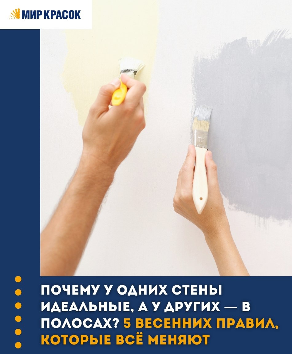». Это техника. И весной как раз то самое время, когда можно сделать всё красиво и предсказуемо. ✅Делимся инсайдом, который обычно знают мастера. 🤍см.слайды🤍 Идеальная стена — это не магия и не дорогая бригада. Это техника, свет и немного терпения. Сохраните эти правила — они действительно работают🍀 #ремонтбезошибок #перекраскастен #лайфхакиремонта #идеальныестены #весеннийремонт #малярныесекреты #цветвинтерьере #миркрасок