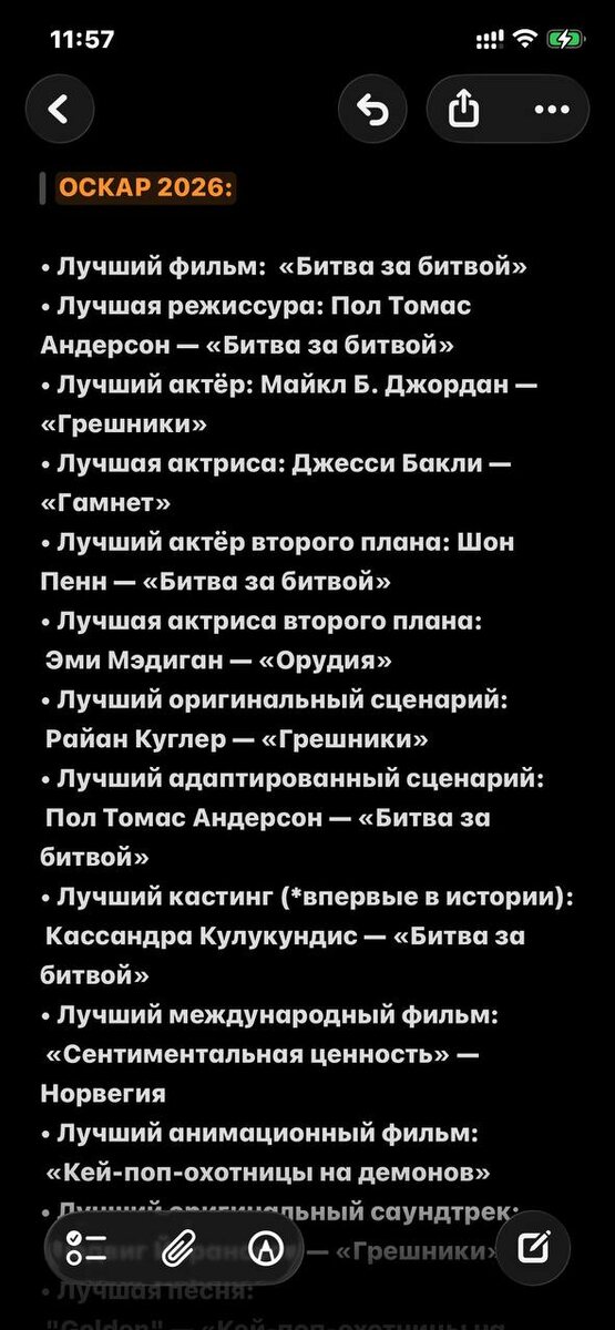 Ночью прошел Оскар 2026😍