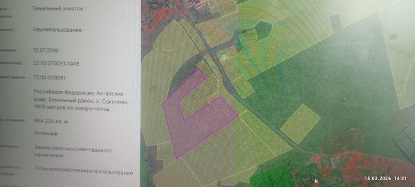 м, с кадастровым номером 22:15:070051:1046, местоположение: Российская Федерация, Алтайский край, Зональный район, с. Соколово, 1800 метров на северо-запад, вид разрешенного использования: сельскохозяйственное использование, сроком аренды: 7 (Семь) лет Канал: Госземля Алтайский край Область: край Алтайский Район: м.о. Зональный район Населенный пункт: с. Соколово Локация: Смотреть на карте ВРИ: Сельскохозяйственное использование Кадастровый номер: 22:15:070051:1046 Кадастровая стоимость: - Вид сделки: Аренда Площадь: 664225 м² Начальная цена: 79700.00 руб. Дата завершения: 02.04.2026 Подробнее: ГИС ТОРГИ #госземля #земляотгосударства #земля #земельныйучасток #земельныеторги #торги #аукцион #арендаземли #аренда #алтайскийкрай