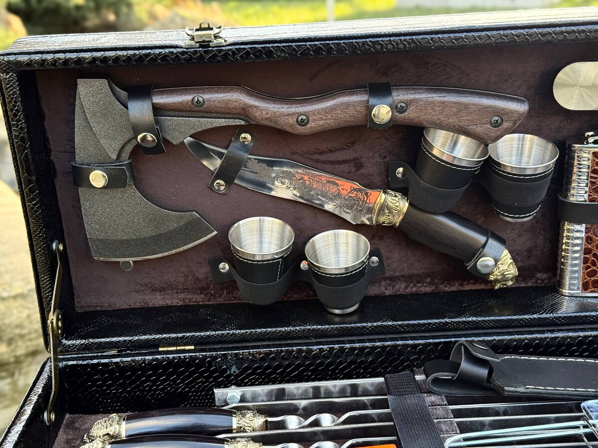 в кейсе с головами тигра🐯 1)Топор 2)Нож 3) Фляжка 4) Стаканчики 4 шт 5) Тарелки глубокие 4 шт 6) Щипцы 7) Шампура 8 шт 8) Складной мангал 9) Барбекюшница ⚪️цена 25.000₽ ЗАКАЗАТЬ В ВАТСАПЕ ЗАКАЗАТЬ В ТЕЛЕГРАММЕ ШУМОВЫЕ АГРЕГАТЫ 🦸♂️ ЭКСКЛЮЗИВНЫЕ НОЖИ 👑 ОТПРАВКА И ОТЗЫВЫ ⚪️+79280609590 В этом посте есть большое видео, которое не загрузилось в Дзен. Откройте оригинал поста в телеграме, чтобы его посмотреть