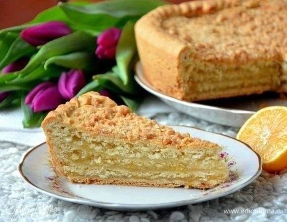 250 грамм йомшарган атланмайны 4 стакан он белән уабыз. Шуңа 2 йомырка, 1,5 аш кашыгы шикәр комы, 1 стакан сөттә җебетелгән чүпрә, әзрәк тоз салып камыр басабыз. 8 кисәккә бүлеп җәябез. Таба төбенә җәя торган беренче катлам зуррак була. Аннан эчлек-камыр-эчлек салып 4 катлы итеп ясыйбыз. Әлеге продуктлардан 2 пирог чыга. Эчлек: 3 лимонны иттарткычтан чыгарып, 1,5 стакан шикәр комы белән болгатабыз. Әзер пирогны газ мичендә өсте кызарганчы пешерәбез.