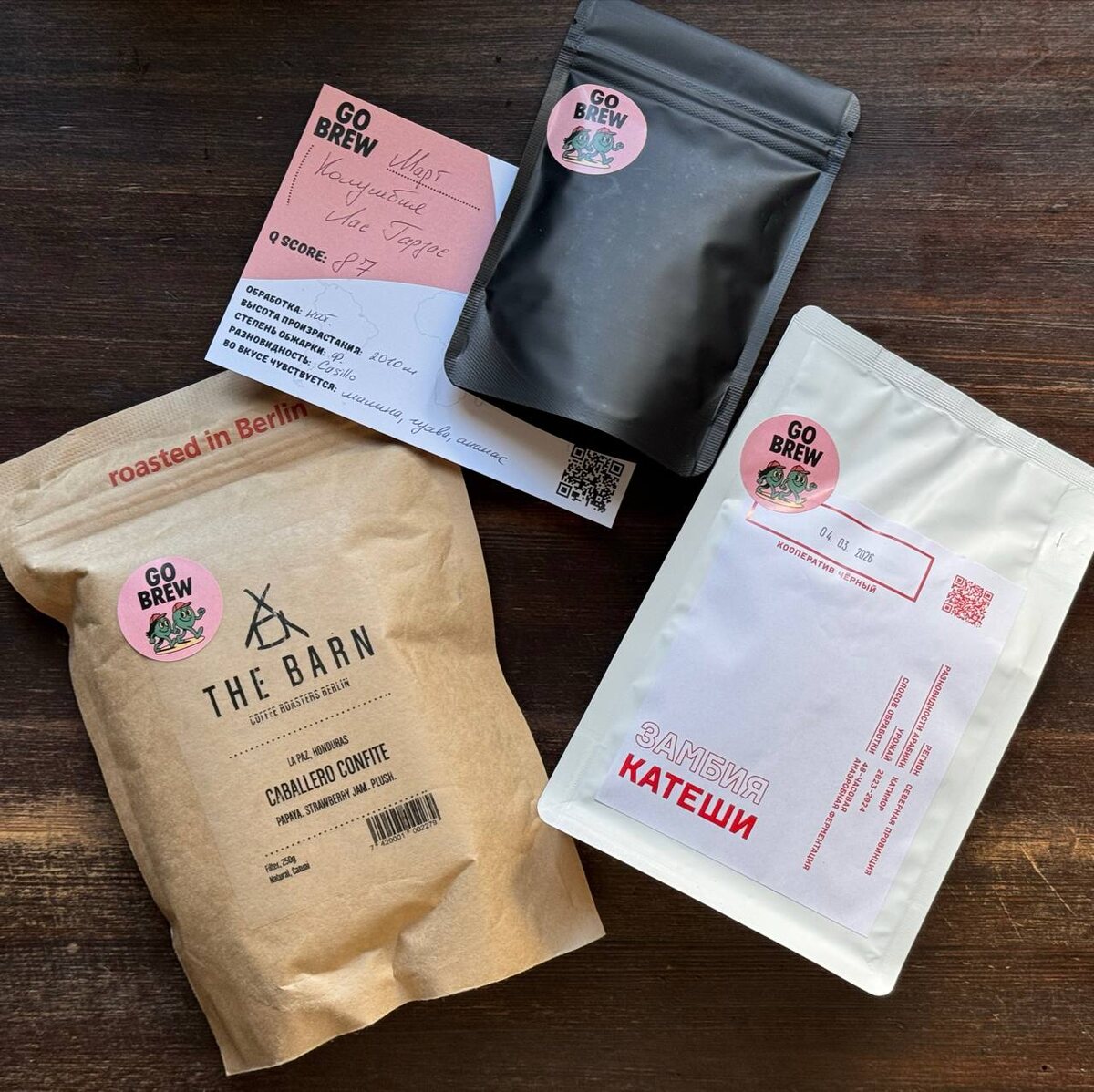 Приехала свежая подписка GO BREW! В этот раз в подписке оказался кофе из Гондураса натуральной обработки от легендарного обжарщика The Barn из Берлина! Дескрипторы интересные, а клапан на пачке заботливо заклеен. Кроме этого, в подписке приехал кофе из Замбии анаэробной ферментации от обжарщика Кооператив Чёрный. Интересно будет попробовать фильтр-кофе из этого региона. Ну и секретным лотом оказалась Колумбия натуральной обработки. Во вкусе малина, гуава и ананас. То есть тоже лот интересный. @Кофезавр