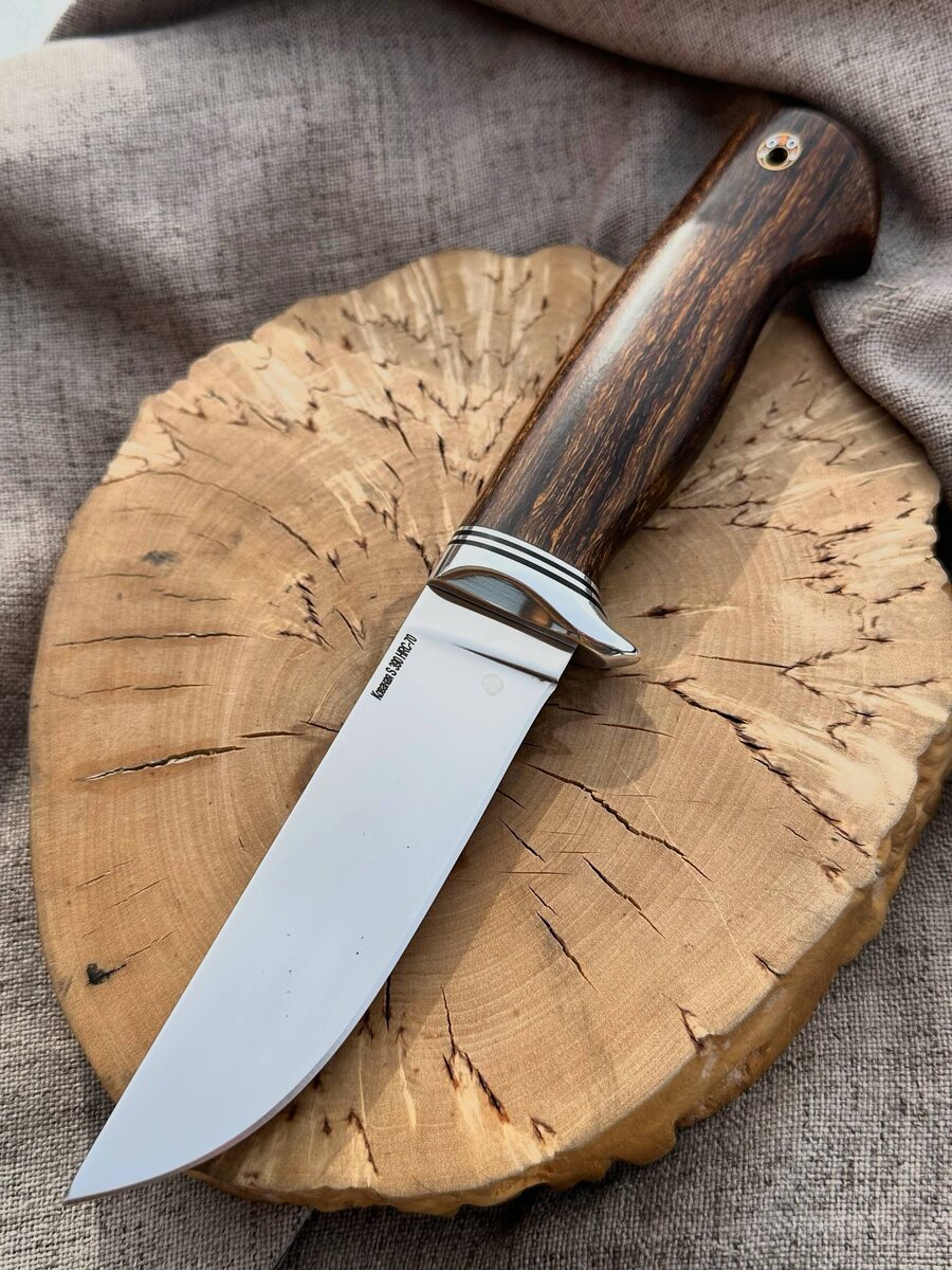 ! S390 Microclean — одна из самых твёрдых и износостойких сталей в мире (HRC 70). Такой клинок режет «в бритву» и держит заточку даже при серьёзных нагрузках. * Прямые спуски от обуха, сатиновая шлифовка — антибликовая и стильная поверхность. * Рукоять из железного дерева: не скользит даже во влажной руке, устойчива к износу и перепадам температур. * Микроподвод 0,2 мм — идеальная острота для тонкой работы на охоте, в туризме и даже на кухне. В комплекте — ножны из натуральной кожи. По желанию изготовим формованные ножны (+8 000 руб.). 💰 Спеццена: 31 664 руб. (вместо 39 580 руб.) 📲 Закажите прямо сейчас: Telegram: [@Nazarklinokbot](https://t.me/Nazarklinokbot) WhatsApp/Viber: [wa.me/79101343831](https://wa.me/79101343831) Кузница Назарова В.В. — пожизненная гарантия, сталь премиум-класса, мастерство в каждом клинке! #кузницаназарова #ножS390 #ручнаяработа #охотничийнож #туризм #подаркидлямужчин