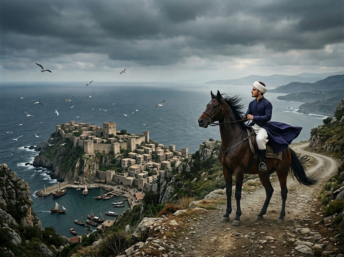 Одежду он взял у конюха: грубую шерстяную рубаху, залатанные шаровары, кожаный пояс без пряжки. Обмотал голову серой тканью, как это делали портовые грузчики, и натянул стоптанные башмаки, от которых пахло конским потом. Зеркала в его покоях не было, но отражение в медном тазу показало то, что нужно: худой парень из порта, каких в Трабзоне тысячи.