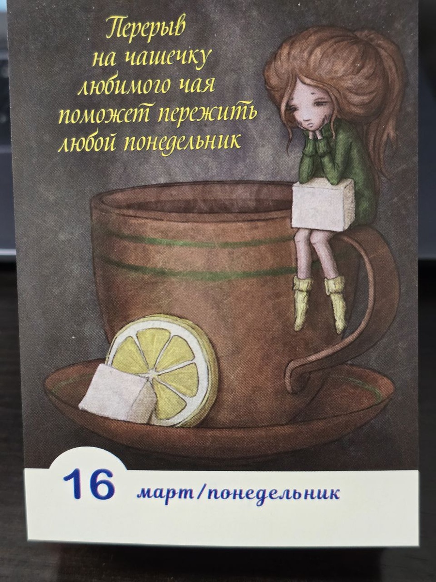Признавайтесь, кто сегодня утром смотрел на будильник с таким видом, будто это не гаджет, а личное оскорбление? Я вот посмотрела. И мой календарик, кажется, тоже всё понял. Сегодня он выдал мудрость уровня «инструкция по выживанию»: «Перерыв на чашечку любимого чая поможет пережить любой понедельник». И знаете…. это звучит как легальный способ уйти в краткосрочный отпуск прямо посреди рабочего хаоса. Почему это работает (с точки зрения психологии и капельки бытовой магии) Ритуал заземления. Пока чайник шумит, мир обязан подождать. Это те самые 5 минут, когда вы не «сотрудник года», не «мать десятилетия» и даже не «человек, который забыл пароль от почты». Вы — просто наблюдатель за тем, как чаинки кружатся в танце. Температурный режим. Горячая кружка в руках — это легальный способ согреть свою внутреннюю тревожность. Психологи (и я в их числе) подтвердят: тактильное тепло помогает снизить уровень кортизола. Или хотя бы не дает уронить лицо в клавиатуру. Вкус как якорь. Липа, берга