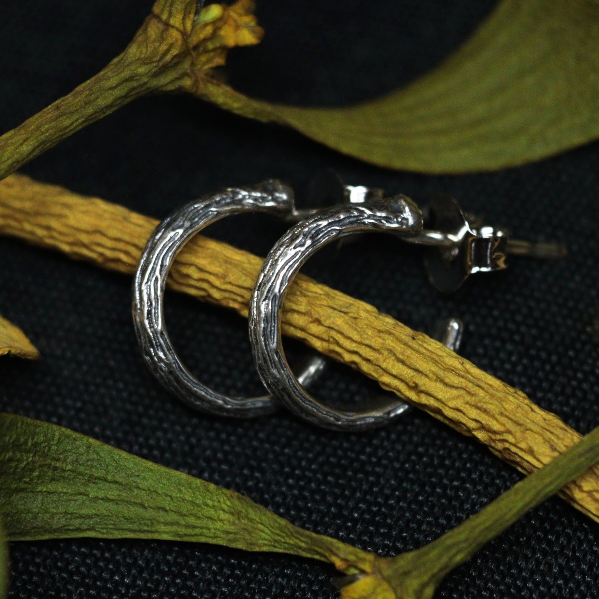 Сделали на заказ повтор сережек в виде веточек омелы. Этот размер полуколец пользуется большей популярностью, чем более крупные или более широкие, хотя и такие варианты тоже есть. Но именно эти небольшие легкие серьги оказались самыми удобными и актуальными для наших заказчиков 🌿 Серьги скопированы с настоящих веточек омелы, которые были предварительно высушены для придания им выразительной фактуры. На фото хорошо видно, как необычно выглядят золотистые сухие омеловые стебельки. Застежка-пусет удобно фиксирует серьги и при этом не утяжеляет их. Серьги сделаны из серебра с чернением, которое еще больше подчеркивает замысловатые природные фактуры.
