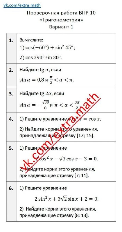 Тригонометрические уравнения" (24ч) Уроки 39-62. Для изучения этой темы вы можете использовать материалы: 🆗ВПР10 Тригонометрия extramath.ru/p/18455 🆗ЕГЭб Тригонометрия в алгебре extramath.ru/p/18832 🆗ЕГЭп Тригонометрия в алгебре extramath.ru/p/18405 👜Магазин дидактических материалов для уроков математики: extramath.ru 📚Таблица КТП: clck.ru/3RDXqk