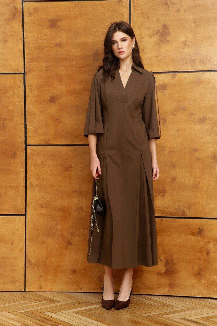Шоколадное эффектное платье с дизайнерскими элементами.
