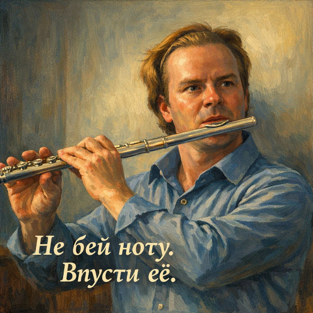 С этой привычкой сталкиваются и начинающие, и вполне опытные флейтисты. Проблема в том, что «ту-ту» кажется понятной подсказкой. Но понятное — не всегда полезное. Очень часто именно этот слог уводит внимание не туда: не к потоку воздуха, не к качеству начала звука, а к языку как будто он главный герой.