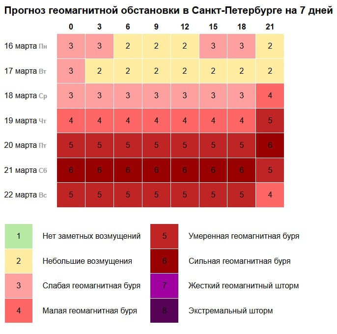🧲🧲🧲 Прогноз магнитных бурь на неделю