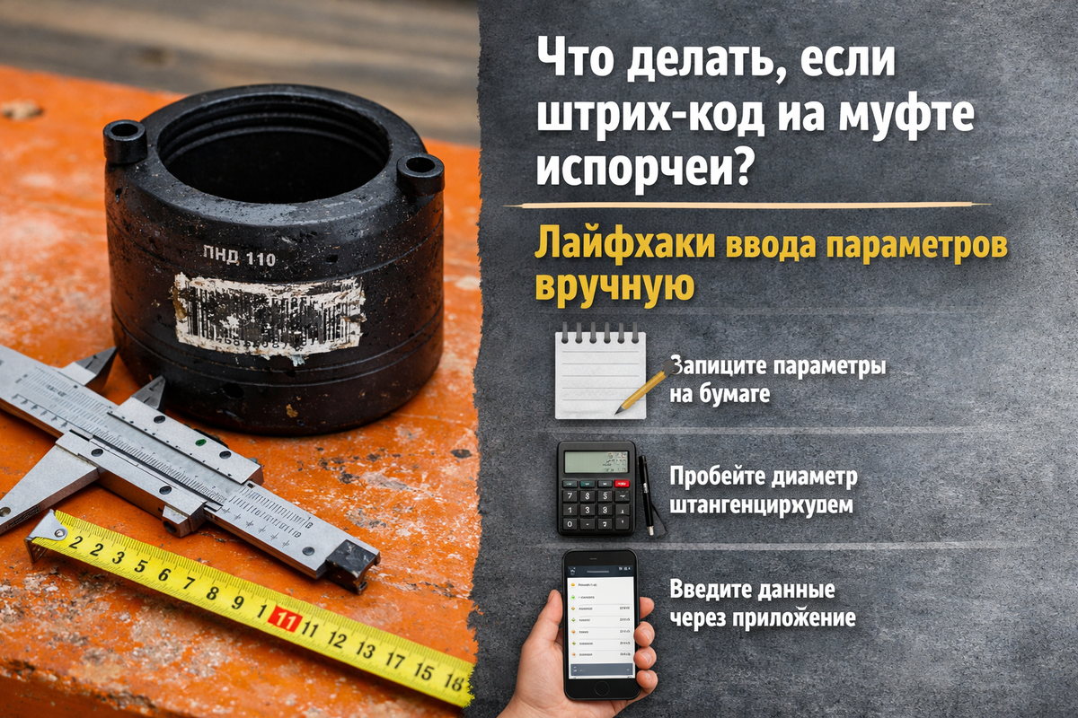Что делать, если штрих‑код на муфте испорчен: ввод параметров вручную и контроль качества сварки