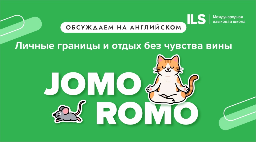 Ещё недавно главным слоганом современной жизни считалось FOMO – fear of missing out, страх что-то пропустить: вечеринку, новость, тренд, встречу друзей, новый сериал. Социальные сети усиливали это чувство: казалось, что у всех жизнь насыщеннее, интереснее и продуктивнее. Но сегодня всё больше людей выбирают противоположный подход – осознанный отдых и заботу о собственных границах. В английском языке даже появились новые слова, которые описывают это состояние: JOMO и ROMO. И если вы общаетесь с иностранными коллегами, друзьями или просто хотите звучать естественно на английском, знать эти выражения очень полезно. Разберёмся, что они означают и как использовать их в разговоре. JOMO (Joy of Missing Out) – это радость от того, что вы что-то пропускаете. Звучит парадоксально, но смысл простой: вы сознательно отказываетесь от лишних дел и чувствуете облегчение. Например, вместо того чтобы идти на шумную встречу после тяжёлой рабочей недели, вы остаётесь дома с книгой, сериалом или просто отд