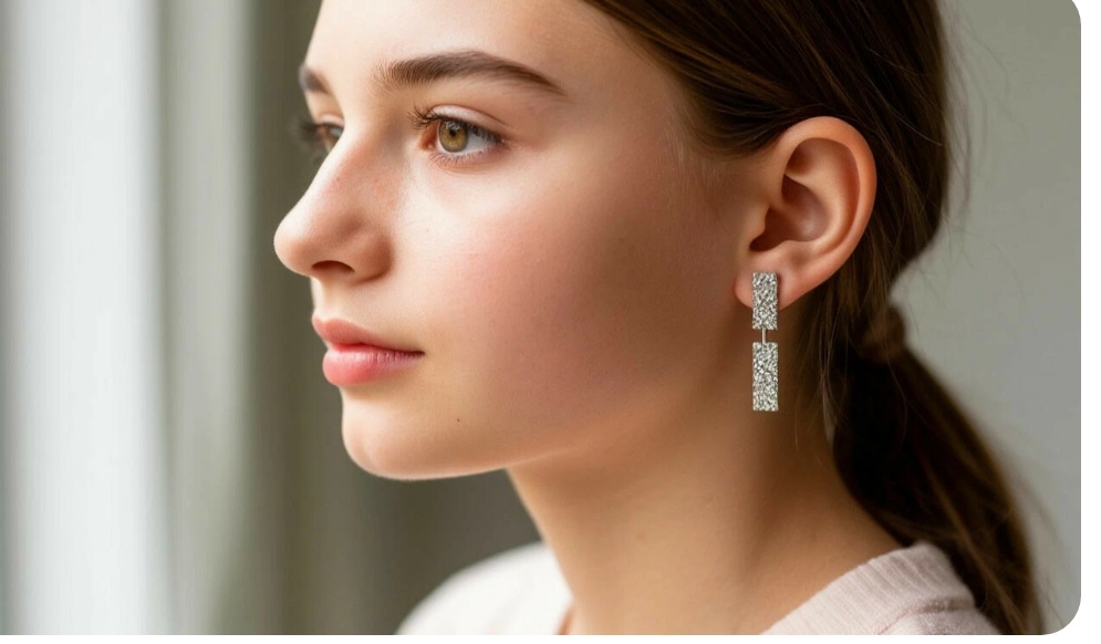 Какой только красоты там не было. Но эти серёжки были чем-то особенным: прямые, как узкие пластины, а внизу усыпаны камушками.