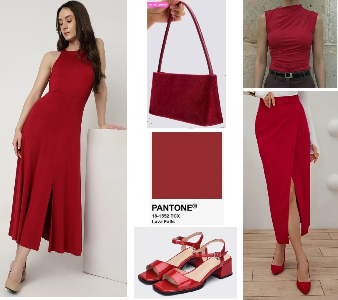 Продолжаем разбирать модные оттенки грядущего лето, чтобы без труда освежить гардероб к новому сезону. Летом меньше вариантов стилистических приемов, потому что мы используем мало вещей. Но выход есть - использовать стильные и интересные вещи: фактурные или с современными фишками в дизайне, база тоже должна быть хорошо продумана. И я собрала в этой статье как удачные базовые, так и вещи - стайлмейкеры. Все выбрано на Wildberries и показано с артикулами. Lava falls Летом тоже хочется иногда чего- то такого огненного. И для этого в трендовых палитрах есть вот такой прекрасный насыщенный красный цвет. Очень классно смотрится в летних образах с белым и голубым. Оттенок с теплинкой в подтоне, поэтому идеален для девушек осенних цветотипов и ярких вёсен. Платье 335621165. Струящее, сшито из вискозы - приятное к телу и красивое по фасону. Сумка 260799944. Босоножки 306161529. Иногда достаточно одного акцента в образе, особенно если это такая яркая сумка или босоножки. Напоминаю, что фактур