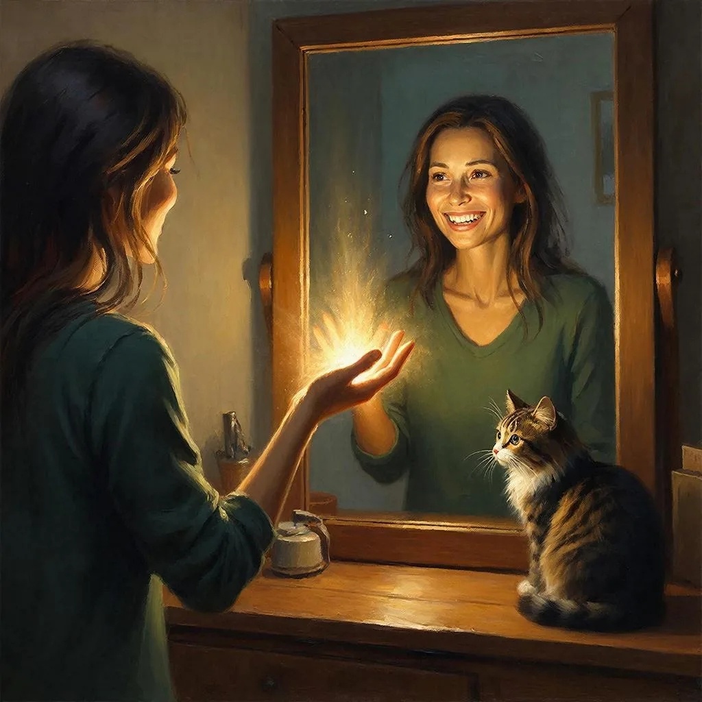 Каждое утро вставайте перед зеркалом. Протяните руку вперёд, ладонью вверх. Смотрите себе в глаза и говорите: