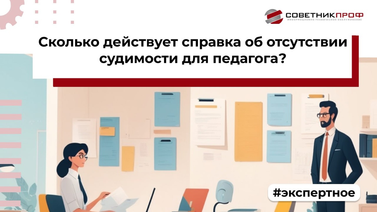 ВОПРОС: Сколько действует справка об отсутствии судимости для педагога? ОТВЕТ: Справка об отсутствии судимости для педагога не имеет установленного срока действия. Работодатель вправе принять справку, выданную ранее, если его внутренними документами не установлен обязательный срок ее получения. ⬇️ Обоснование ⏺ Трудовой кодекс РФ обязывает предъявлять справку о наличии (отсутствии) судимости при заключении трудового договора, если работа относится к деятельности, к которой не допускаются лица, имеющие или имевшие судимость. К таким видам деятельности относится педагогическая деятельность (статья 65, подпункты 3 и 4 части 2 статьи 331 ТК РФ). ⏺ Федеральные законы, ТК РФ, а также подзаконные акты, регулирующие порядок выдачи справок (в том числе Приказ МВД России от 27.09.2019 N 660), не устанавливают срока действия такой справки. Форма документа также не содержит сведений о его "сроке годности". 🤔 Если у работодателя возникают сомнения в актуальности представленных сведений, он вп