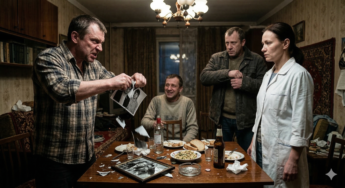 Вечером Римма вернулась домой. Квартира на окраине Рубцовска встретила её запахом дешевых сигарет и мужским смехом. В гостиной сидели трое: её муж Сергей и двое его друзей — Коля и Андрей. На столе стояли пустые бутылки, тарелки с остатками еды и старая свадебная фотография в рамке. Римма помнила, как её мама плакала в тот день, говоря, что Сергей — «парень с огоньком». Огонек превратился в вялое тление безработного человека, который жил на её зарплату и считал, что Римма «просто сидит в тепле на заводе».