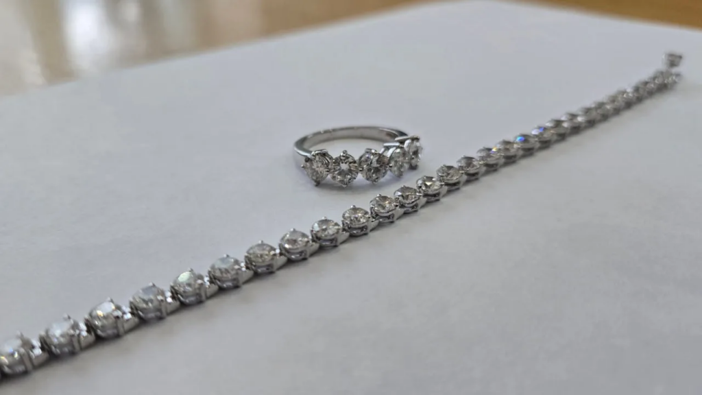 Сотрудники Главного управления по борьбе с контрабандой ФТС России вместе с минераловодскими таможенниками пресекли незаконный ввоз драгоценностей в аэропорту Грозного. Во время оперативных мероприятий в зоне таможенного контроля остановили двух пассажирок, прибывших рейсом из Стамбула. С помощью технических средств у женщин обнаружили три браслета и два кольца из белого металла с прозрачными камнями, спрятанные под верхней одеждой. Как выяснилось, пассажирки оказались сестрами. Они объяснили, что везли украшения для личного пользования и не знали о необходимости декларировать такие товары. Экспертиза показала, что изделия новые и изготовлены из белого золота 750-й пробы. Браслеты украшены 121 бриллиантом общей массой 25,41 карата, а кольца — десятью бриллиантами массой 6,56 карата. Общая стоимость украшений составила 5,7 млн руб. Ювелирные изделия изъяли. Таможенники возбудили два уголовных дела по ч. 1 ст. 226.1 УК РФ о контрабанде стратегически важных товаров. Санкция статьи предусм
