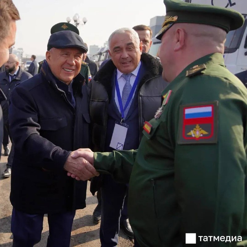 Перед отправкой грузовики осмотрел Раис Татарстана Рустам Минниханов. Колонна доставит на Луганщину стройматериалы, продукты, бытовую химию, шефскую помощь участникам специальной военной операции и другие вещи. Фото: Владимир Васильев В Telegram наблюдаются сбои, читайте Татмедиа в MAX