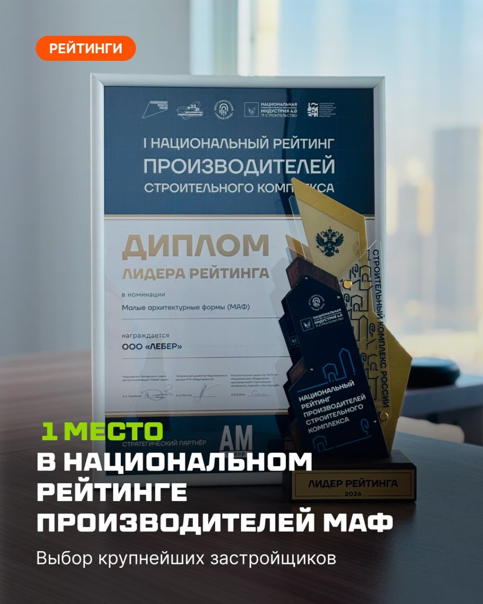 По результатам голосования экспертного жюри I Национального рейтинга производителей строительного комплекса среди 10 000 претендентов, Лебер занял 1 место в категории «Малые архитектурные формы (МАФ)». Почему этот рейтинг важен для рынка? Победителей выбирали топ-менеджеры крупнейших застройщиков и генподрядчиков страны: ГК ФСК, Главстрой, Мосинжпроект, DOGMA, КОРТРОС, ПИК, «Основа» и других. «Когда профессионалы такого уровня отдают нам лидерство, они подтверждают, что Лебер — стабильное звено в их производственном конвейере, где критически важны сроки, логистика и предсказуемость», — отмечает Игорь Шаповалов, директор по маркетингу компании «Лебер». Для отрасли результаты этого голосования станут главным ориентиром на 2026 год при выборе подрядчиков для благоустройства жилых комплексов. 😇 Гордимся тем, что лидеры строительного комплекса выбирают решения Лебера. Оставьте заявку, чтобы реализовать проект вместе с лидером рынка. 📲 Подписывайтесь на наш канал в МАХ