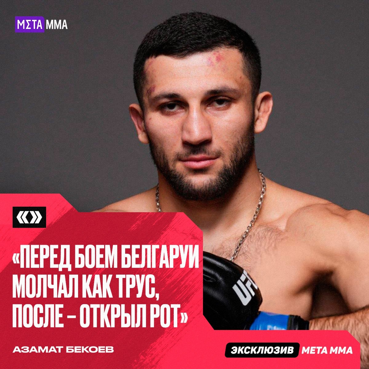 ». Бекоев жестко прошёлся по сопернику Российский боец UFC Азамат Бекоев рассказал, почему проиграл Юсри Белгаруи, и резко высказался о сопернике. По словам бойца, ему в последний момент поменяли оппонента, а также на бой не смог прилететь его тренер Артем Левин. «Недооценки не было. Ситуация сложилась иначе. Мне поменяли соперника в последний момент. Изначально я готовился к одному бойцу, а пришлось драться с другим – совершенно другим ударником, с которым надо было бороться. И в какой-то момент я понял: бой будет очень сложным, потому что бороться я сейчас не могу. Были мысли сняться. Но я никогда не снимался с боев. Никогда. Как воин, не мог просто отменить бой. Решил драться. Плюс мой тренер Артем Левин не смог полететь со мной по определенным причинам. А он ударник, его подсказок очень не хватало. Не надо было лезть в борьбу. Знаю свои ошибки. Даже в таком состоянии я мог выиграть. Что касается Белгаруи: перед боем я пытался его раскачать, писал ему – он молчал как трус. А ког