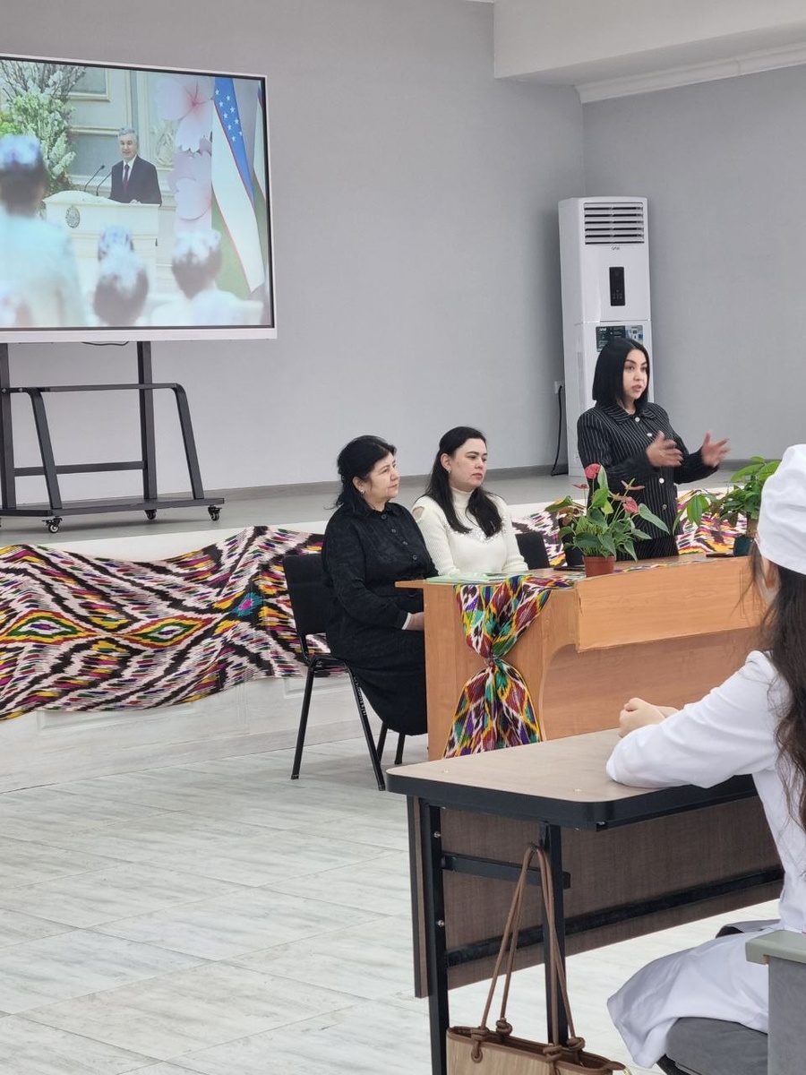 ”! 🔺ToshDavTU Ijtimoiy fanlar va pedagogika kafedrasi mudiri, professor Sh.Shoyimova tashabbusi bilan professor-o'qituvchilar va Yunusobod tumani IIB xotin-qizlar masalalari bo‘yicha katta inspektori, podpolkovnik K.D.Baxitova ishtirokida Yunusobod tumanidagi Abu Ali ibn Sino nomidagi Jamoat salomatligi texnikumida “Ayollarni e’zozlash – jamiyat barqarorligining asosi”! mavzusida ma’naviy-ma’rifiy tadbir tashkil etildi. 🔵Tadbir davomida xotin-qizlarning jamiyatdagi o‘rni, ularning huquq va manfaatlarini himoya qilish, sog‘lom turmush tarzini targ‘ib etish, ijtimoiy faolligini oshirish masalalari yuzasidan davra suhbati o‘tkazildi. Ishtirokchilar tomonidan mavzu doirasida qiziqarli fikrlar va ma’lumotlar taqdim etildi. 🔹Bu kabi ma’naviy-ma’rifiy tadbirlar yoshlarda ayollarga hurmat va e’tiborni kuchaytirish, jamiyatda gender tenglikni ta’minlash hamda sog‘lom va barkamol avlodni tarbiyalashda muhim ahamiyat kasb etadi. ✅Rasmiy sahifalarimiz: Telegram | Facebook | Instagram | You