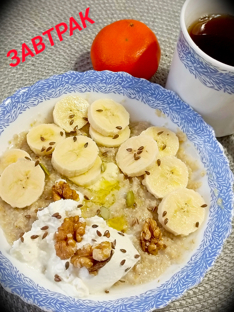 Я же, вернувшись с ночной смены, первым делом позавтракала. Мой любимый завтрак – каша с бананом, рикоттой, сливочным маслом и грецким орехом. Дополнила