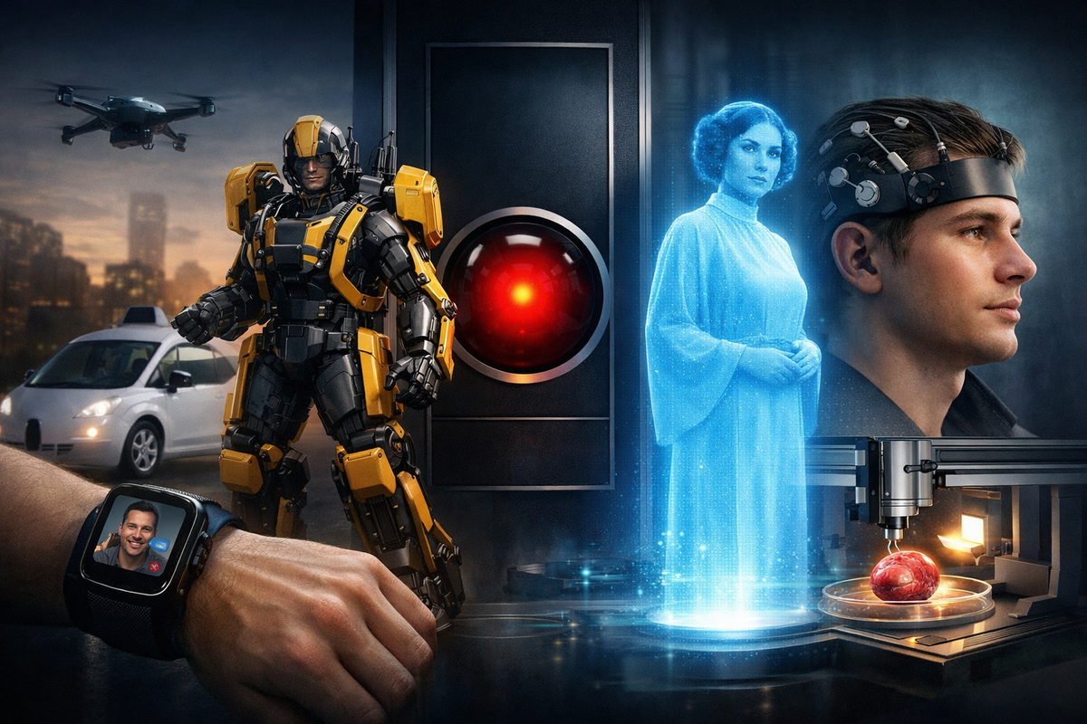 Видеозвонки предсказали точно. Но никто не предсказал, что они будут бесплатными и доступными с кармана. Голографию угадали. Но не угадали, что первый массовый шаг к ней сделает не NASA, а компания, производящая очки дополненной реальности. Искусственный интеллект предсказали злобным и сознательным. Реальный оказался статистической моделью без внутренней жизни, но с поразительными способностями.