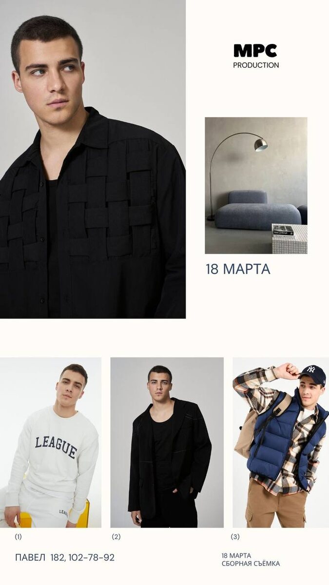 #Москва 🗓18 марта Примеры локаций прикреплены во вложениях Модель: ◾️Павел - 182 см, 102-78-92 ◾️Янина - 170 см, 83-63-92 💸 Стоимость 1 артикула от 2900 рублей: 15 фотографий в ретуши + все исходные материалы БЕСПЛАТНО ⚡️Готовность фотографий - в течение 48 часов со дня съёмки Для записи пишите нашему менеджеру @mpcont_help Фотографии моделей взяты из их портфолио