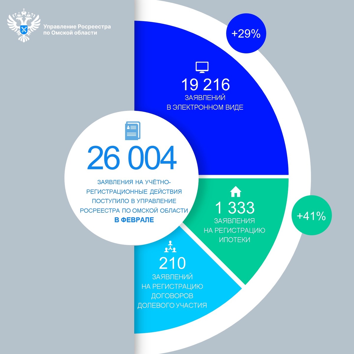 В феврале 2026 года в Управление Росреестра по Омской области от жителей региона поступило 26 004 заявления на проведение учетно-регистрационных действий в отношении объектов недвижимости, что на 36 % больше, чем месяц назад (январь – 19 172) и на 22 % больше, чем год назад (февраль 2025 – 21 230). Самой востребованной услугой ведомства, за которой обращались жители региона, уже традиционно остается государственная регистрация права –19 059 заявлений, в 3,3 раза меньше заявок – на постановку объекта на кадастровый учет (5 774). Реже всего омичи за этот период воспользовались единой процедурой по постановке на кадастровый учет недвижимого имущества с одновременной регистрацией права собственности – 1 171 заявитель. В электронном виде направлено более половины пакетов документов – 19 216 (или 74 %), что на 29 % больше, чем месяцем ранее (в январе – 14 939 электронных заявок) и на 64 % больше, чем год назад (февраль 2025 – 11 694). Количество ипотечных сделок продолжает расти. По итогам