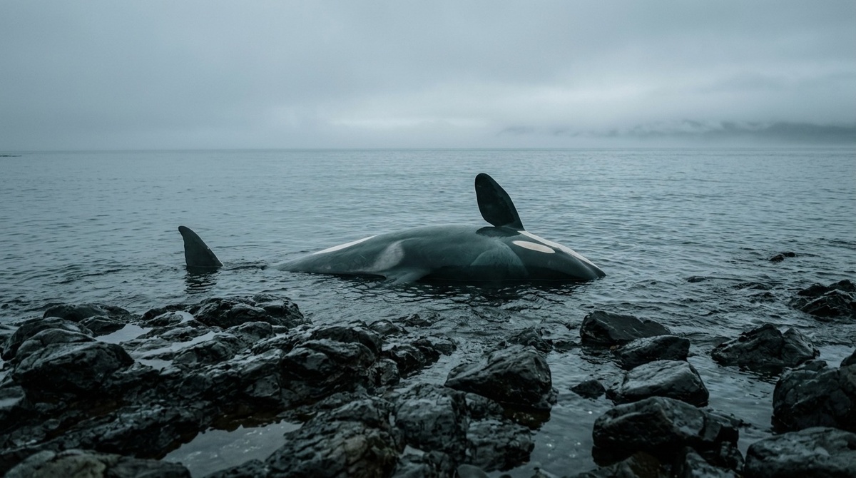 Косатка была молодая. Это я понял сразу – некрупная, метра три с половиной, не больше. Детёныш, почти подросток. Она лежала на боку в мелководье, вода едва покрывала её.