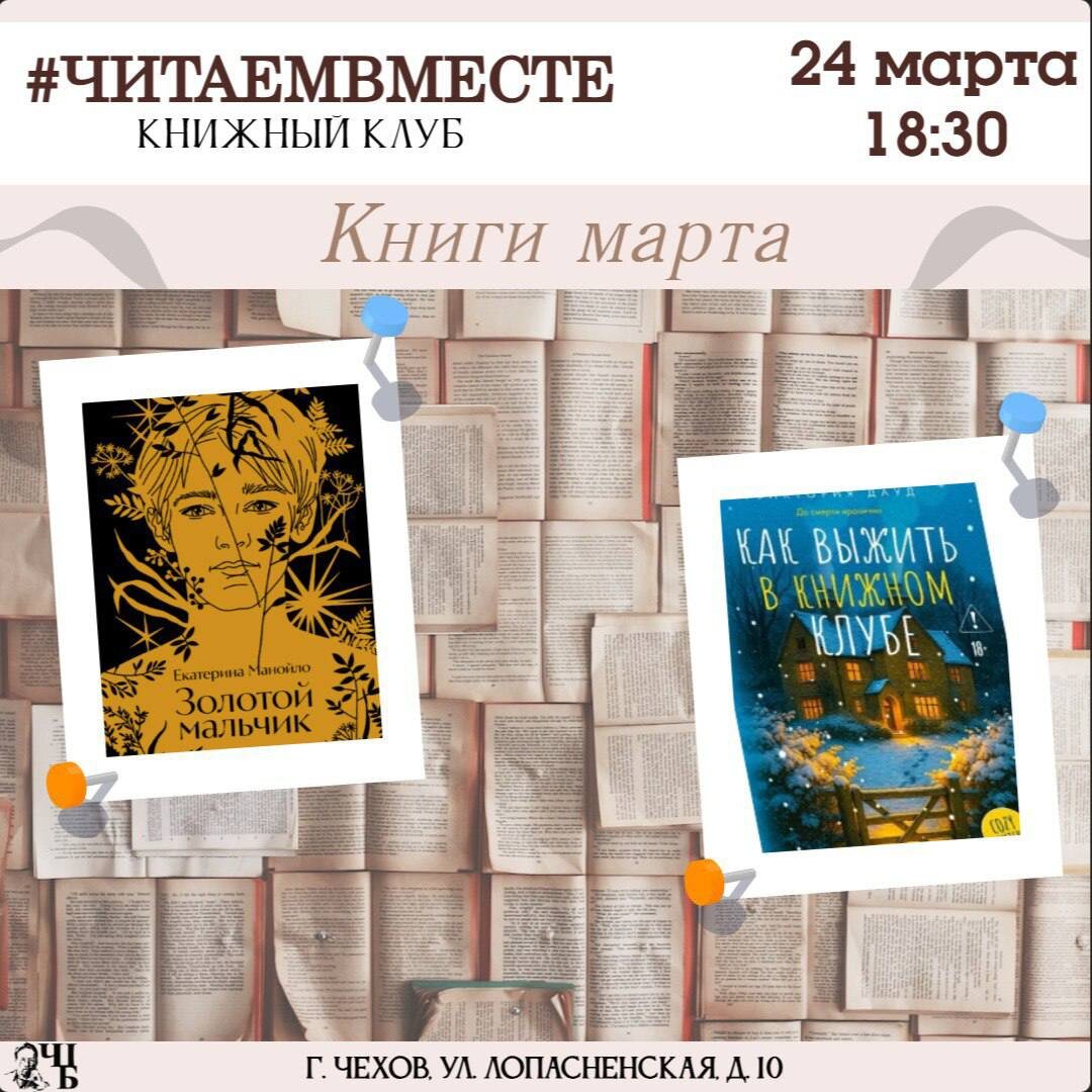 ✨ 📚 #ЧИТАЕМВМЕСТЕ приглашает всех книголюбов на встречу книжного клуба в Центральной библиотеке 24 марта в 18:30! Книги месяца: «Золотой мальчик» Екатерины Манойло и «Как выжить в книжном клубе» Виктории Дауд. Вас ждут обсуждение сюжетов, обмен впечатлениями и живое общение. Даже если вы не прочитали книги, приходите знакомиться и погружаться в мир литературы! До встречи! 🤗 👉 Прислать новость 💥 Проект "Чехов Детям"