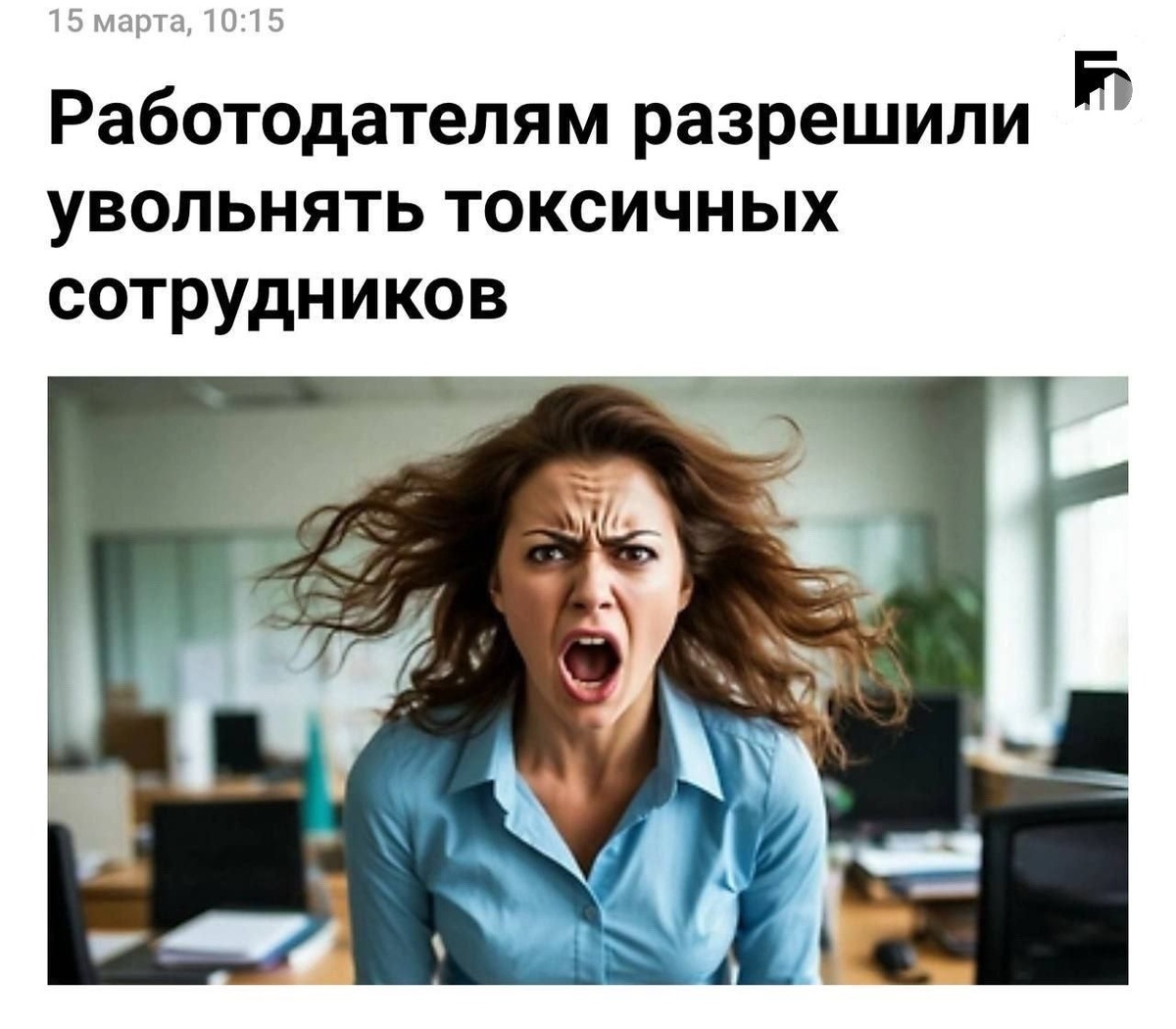 Работодателям разрешили увольнять за токсичность. Негатив теперь считается нарушением корпоративного кодекса. Вы знаете кому это переслать.