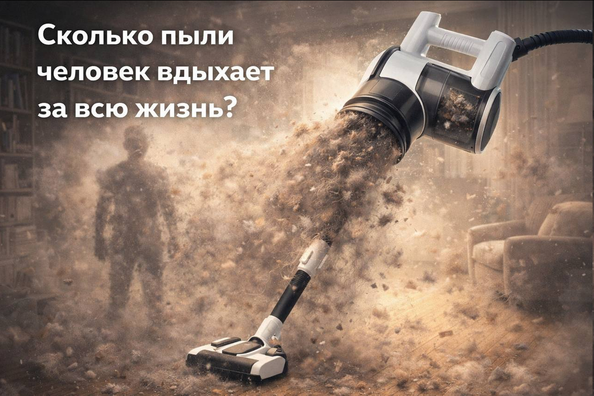 Вы когда-нибудь задумывались, сколько пыли мы на самом деле вдыхаем дома? Мы её почти не замечаем. Она лежит на полках, под диваном, на шкафах. Но большая часть пыли вообще не лежит — она постоянно летает в воздухе. И каждый вдох приносит её в наши лёгкие. Попробуем посчитать. Сколько пыли вообще есть в квартире. Исследования качества воздуха показывают интересную вещь. В обычной квартире концентрация пыли может составлять: 30–300 микрограммов на кубический метр воздуха. Если квартира убирается редко, показатель может быть ещё выше. Теперь возьмём среднее значение для пыльного помещения: ≈ 150 микрограммов пыли на кубический метр. Сколько воздуха вдыхает человек? В среднем человек вдыхает: 10–12 тысяч литров воздуха в сутки. Это примерно: 10–12 кубических метров воздуха. Теперь умножаем. Если в каждом кубическом метре есть 150 микрограммов пыли, то в сутки человек может вдохнуть: около 1,5 миллиграмма пыли. Кажется мало. Но дальше начинается самое интересное. ⸻ Сколько это за год 1,5
