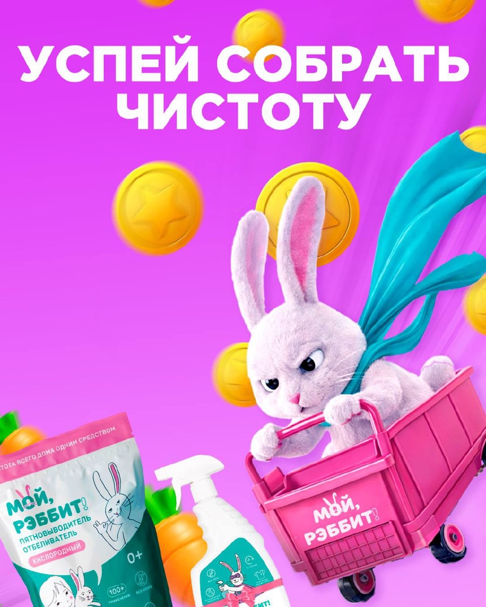 🥕 Покупаете любимые средства «Мой, Рэббит!» с бейджем «Морковск» — получаете виртуальные морковки! Копите их и меняйте на билеты для розыгрыша iPhone, AirPods, баллов Ozon и других призов Как участвовать: • Заходите в приложение Ozon Ищите наши товары с бейджем «Морковск»🥕 • Покупайте и получайте морковки после доставки • Участвуйте в играх и выполняйте задания, чтобы копить еще больше • Успейте забрать чистоту и выиграть призы 👉 Ссылка на нашу продукцию на OZON