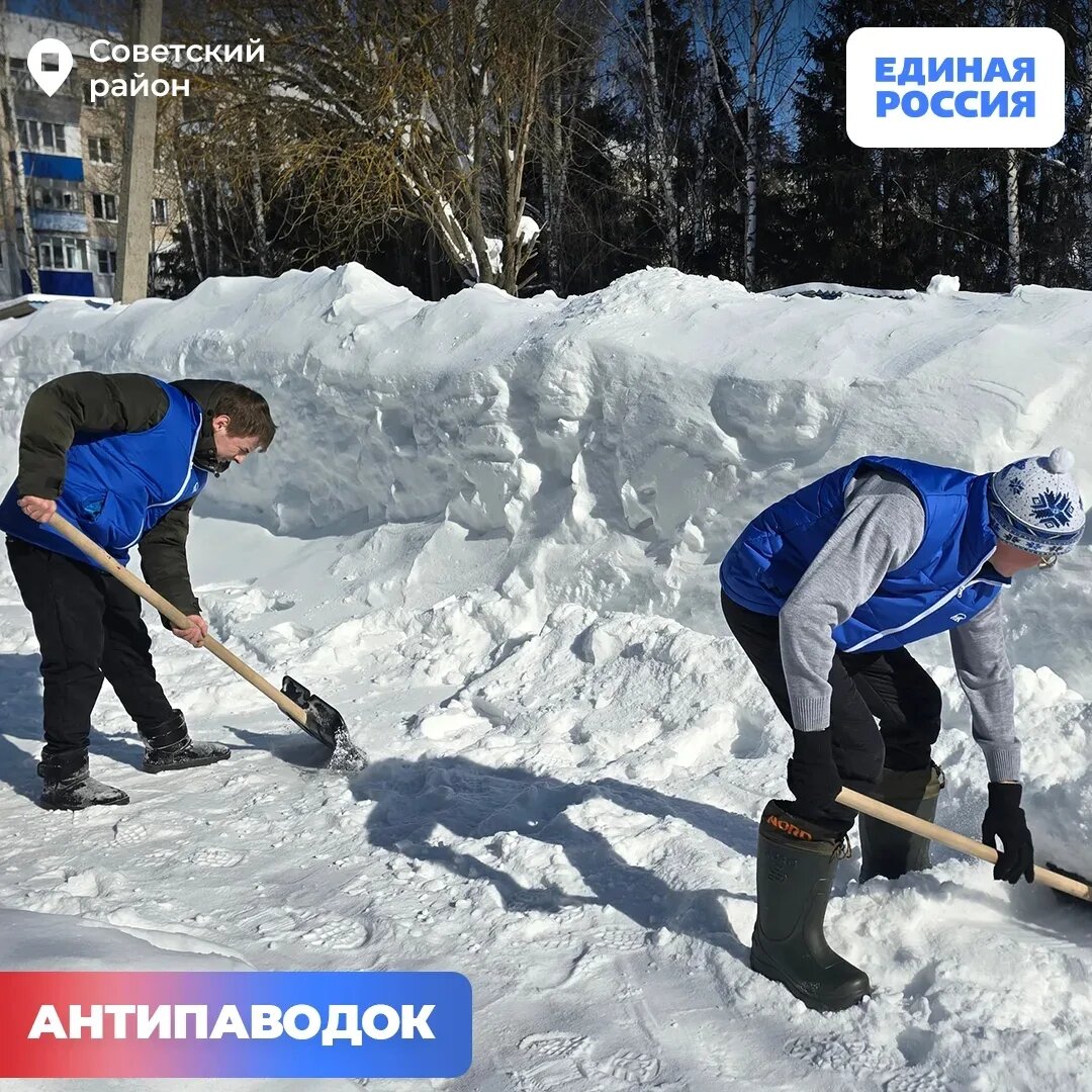 Активисты местного отделения «Единой России» провели акцию «Антипаводок» на территории детского сада «Ромашка» в посёлке Советский. Проход к пожарному выходу оказался заблокирован двухметровыми сугробами — снег и лёд, счищенные с кровли, образовали затор, с которым не могли справиться сотрудники учреждения.