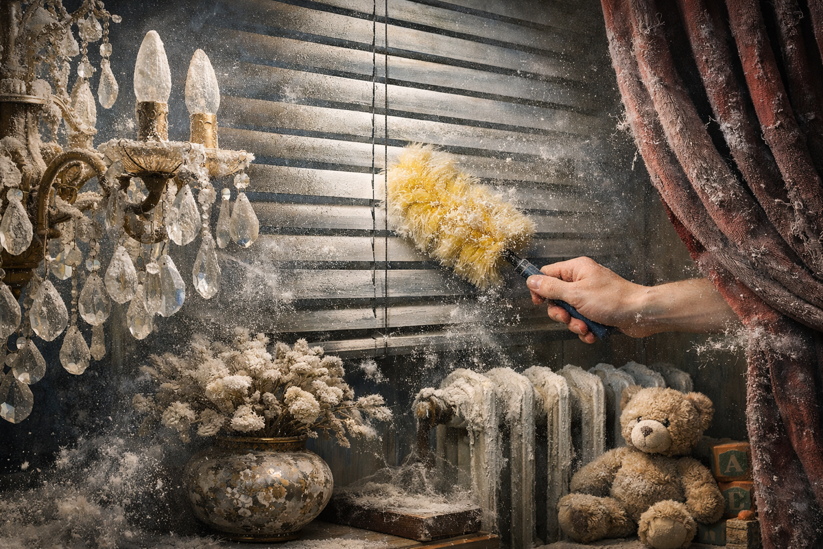 Горизонтальные жалюзи — одно из самых популярных оконных решений. Регулируют свет, дают приватность, выглядят аккуратно. Но у каждой ламели — верхняя и нижняя поверхность. Перемножьте на количество полос. Получите десятки горизонтальных плоскостей, которые собирают пыль каждый день.