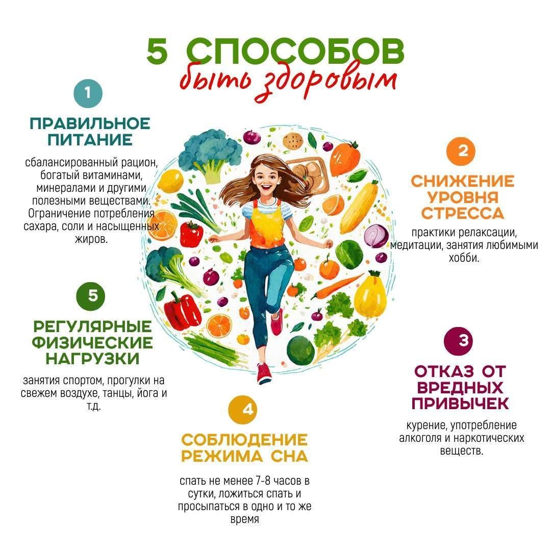 : 🥗 Есть вкусно, но полезно (да, можно совмещать) 🧘 Выдыхать и не накручивать (проще сказать, но пробуем) 🚭 Не травить себя (очевидно, но лишним не будет) 😴 Спать, спать и еще раз спать (тело любит режим) 🚶 Двигаться в кайф (танцы, прогулки, хоть пальцем шевелит