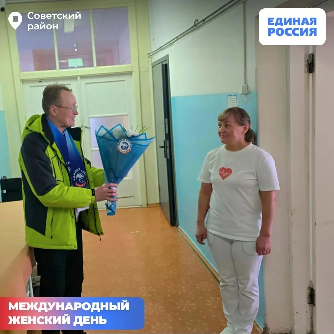 В Международный женский день секретарь местного отделения «Единой России» Сергей Халтурин и сторонник партии, депутат райсобрания Иван Мухлыгин поздравили женщин, которые ежедневно доказывают свою стойкость, самоотверженность и любовь к Родине Тёплые слова благодарности прозвучали в адрес супруги и дочерей бойца, находящегося в зоне СВО. Именно они — настоящий тыл, опора и вдохновение для своего героя. Пожелали им скорейшего возвращения защитника домой, здоровья и мирного неба. Отдельные поздравления — девушкам-медикам приёмного покоя Советской ЦРБ. Каждый день они на передовой борьбы за жизнь и здоровье людей, дарят надежду и спасают, порой не жалея себя. Им выразили глубочайшую признательность за нелёгкий труд, пожелали сил, терпения и благополучия.