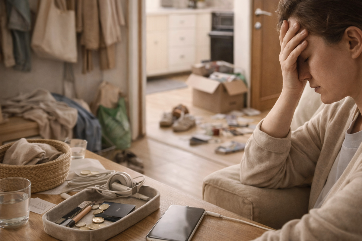 Одна чашка на столе не страшна. Один пакет у двери тоже. Одна вещь на стуле, один чек в кармане, один провод на виду, одна непротёртая поверхность — всё это выглядит как пустяк.